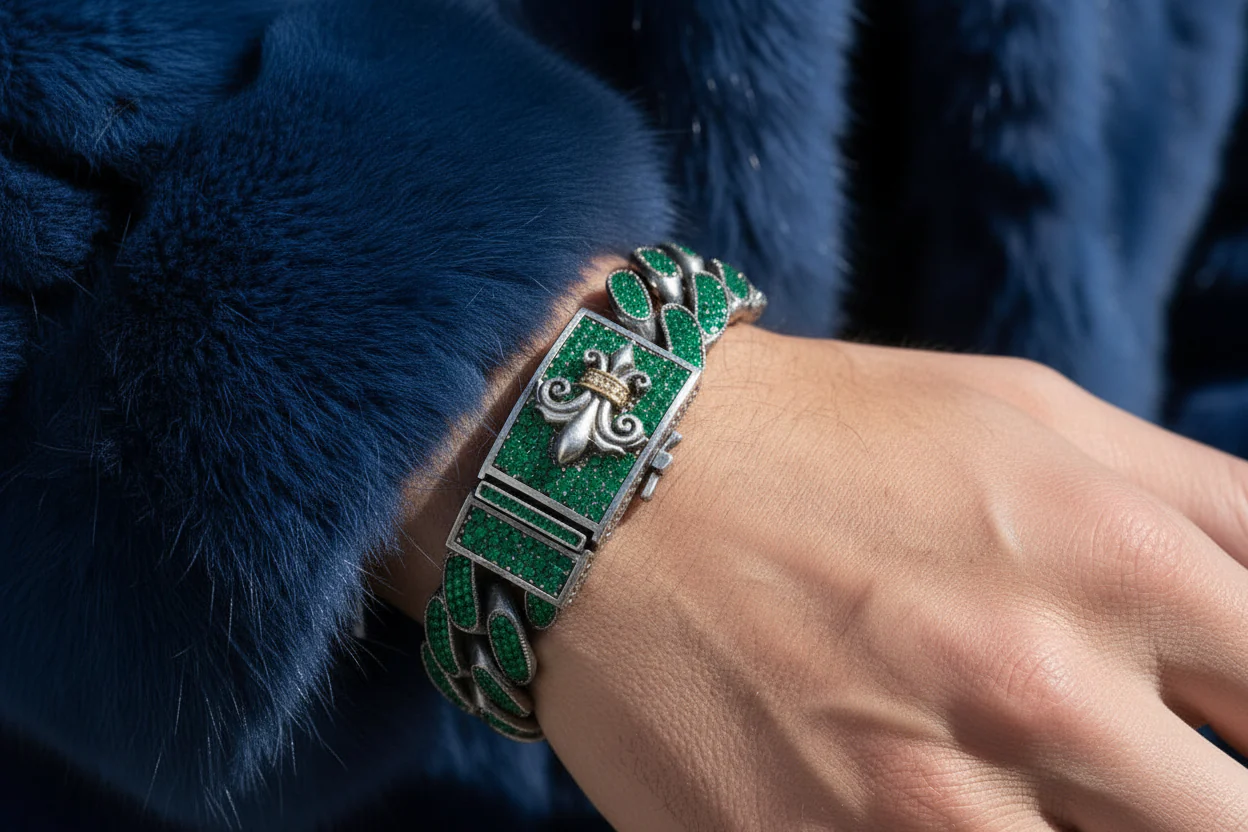 16mm Unique Fleur-De-Lis Iced Cuban Link Bracelet with Black Rhodium | Dark Oxidized 925 Silver Bracelet | With Certificate of Authenticity and 925 Hallmark
