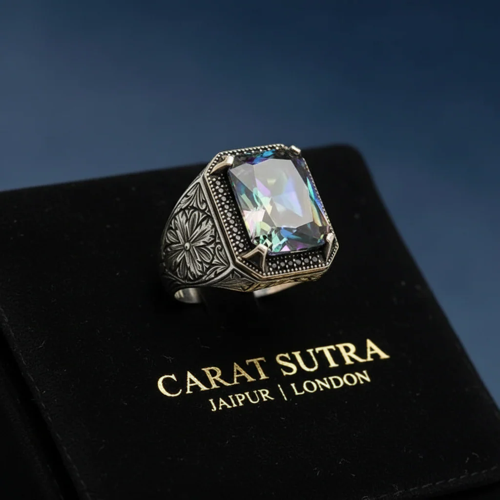 RARE PRINCE by CARAT SUTRA | Unique Designed Turkish Style Ring with Multicolored Alexandrite | 925 Sterling Silver Oxidized Ring | Men's Jewelry | With Certificate of Authenticity and 925 Hallmark