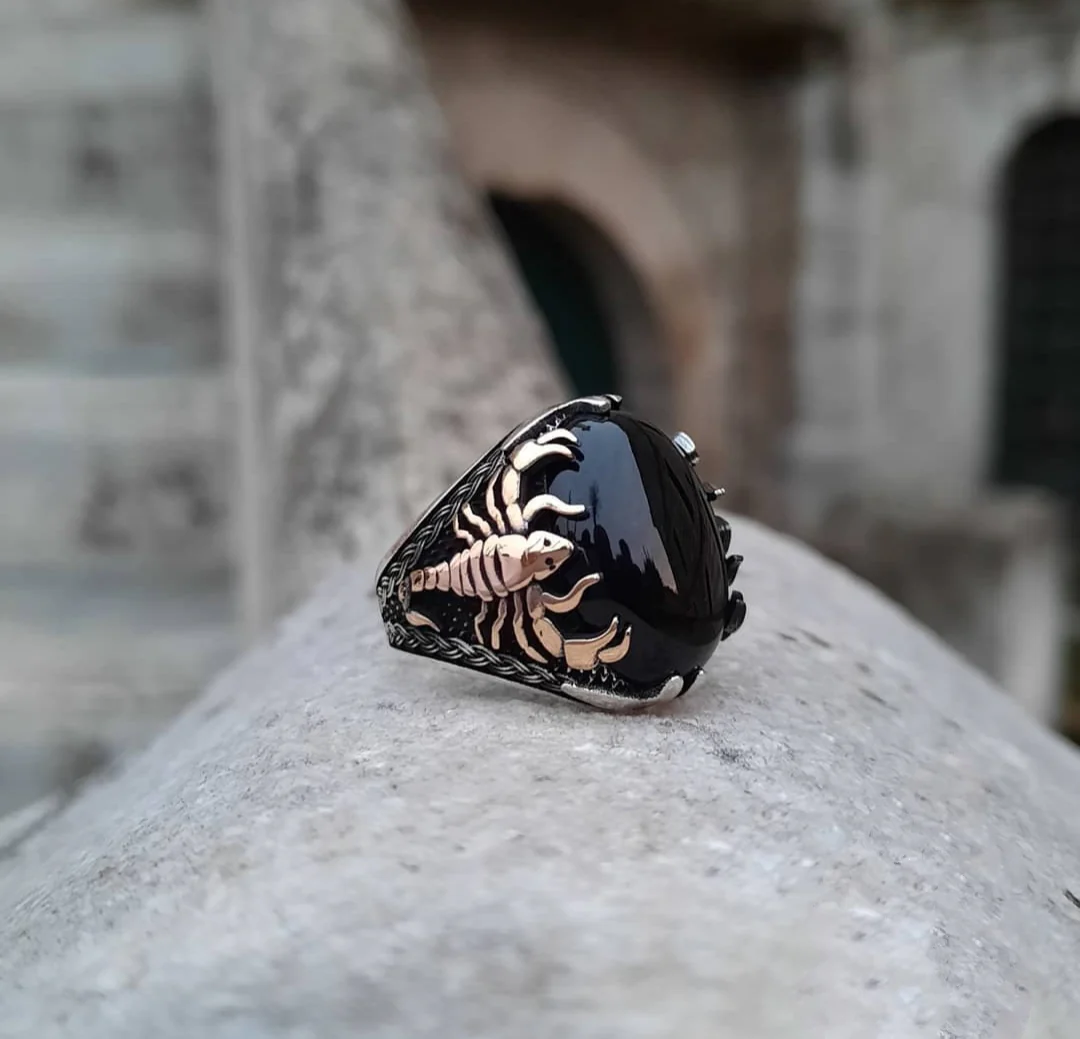-70%RARE PRINCE by CARAT SUTRA | Unique Turkish Style Scorpion Ring with Natural Black Onyx (Cabochon) | 925 Sterling Silver Oxidized Zodiac Ring | Men's Jewelry | With Certificate of Authenticity and 925 Hallmark—