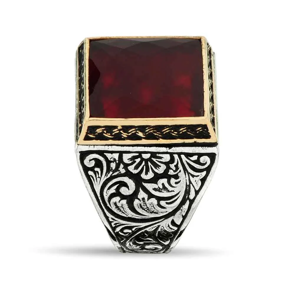 RARE PRINCE by CARAT SUTRA | Unique Turkish Style Ring with Faceted S Ruby | 925 Sterling Silver Oxidized Ring | Men's Jewelry | With Certificate of Authenticity and 925 Hallmark