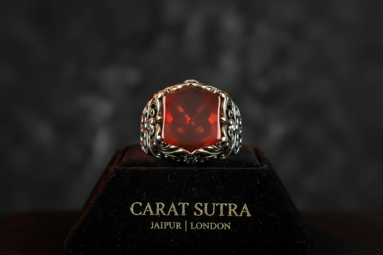 RARE PRINCE by CARAT SUTRA | Unique Turkish Style Ring with Natural Red Agate | 925 Sterling Silver Oxidized Ring | Men's Jewelry | With Certificate of Authenticity and 925 Hallmark