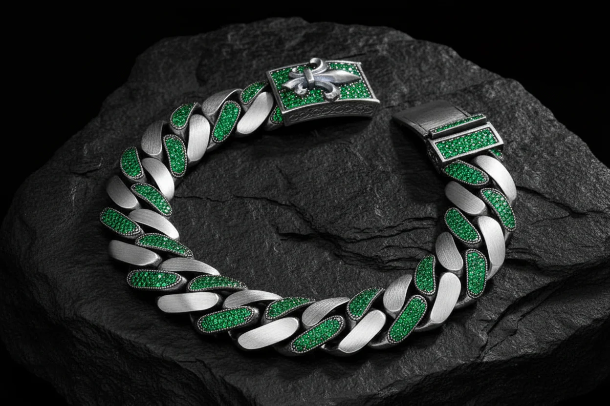 - PRODUCT DETAILS: This is an Exclusive 925 Pure Sterling Silver Bracelet studded with Black Zircons, weighs around 80g for 8 inches