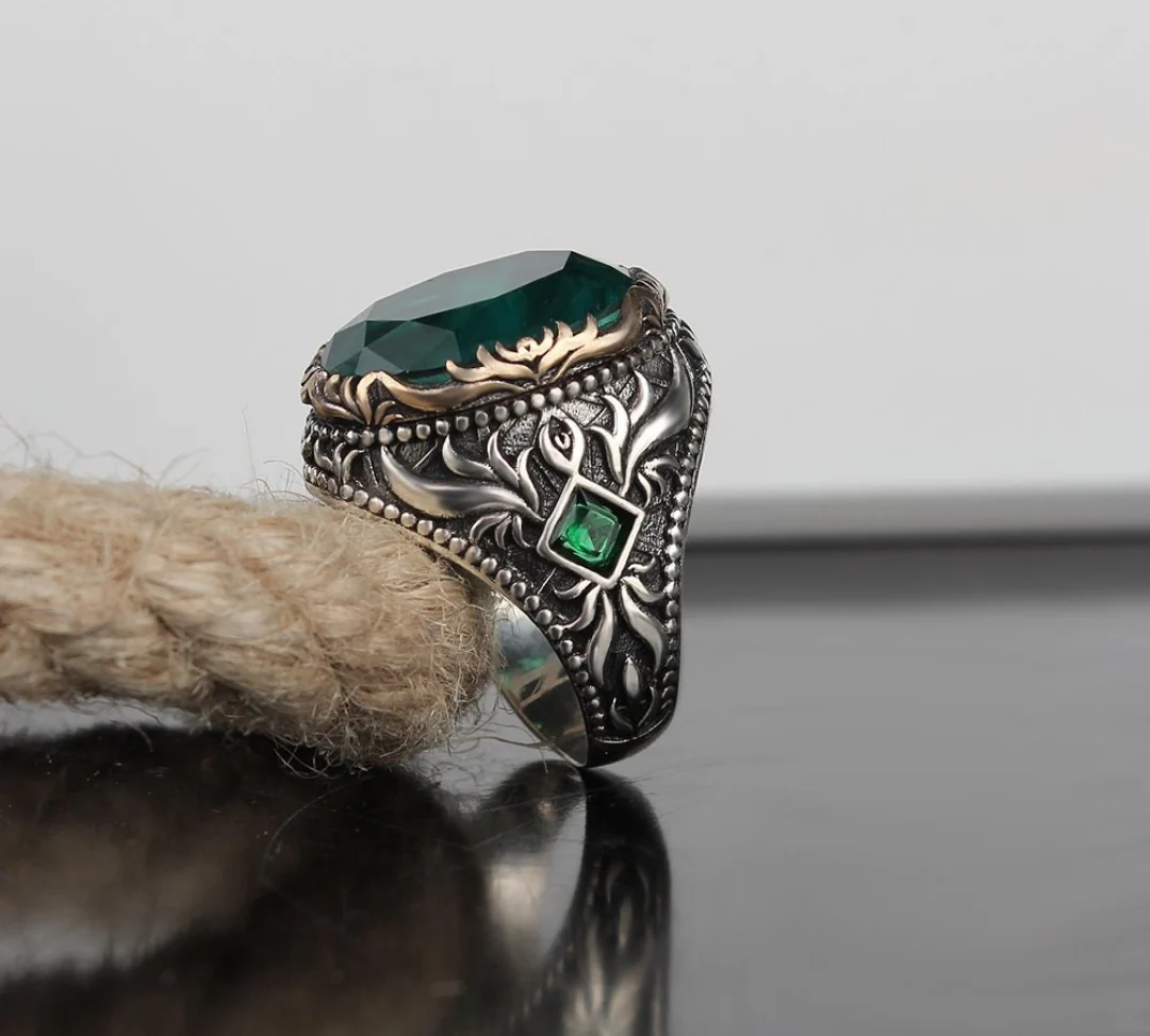- PRODUCT DETAILS: This Exclusive 925 Pure Sterling Silver Ring is an Unique Turkish Style Men Ring. Designed for ALPHA MEN. Natural Zambian Emerald with lab test report.